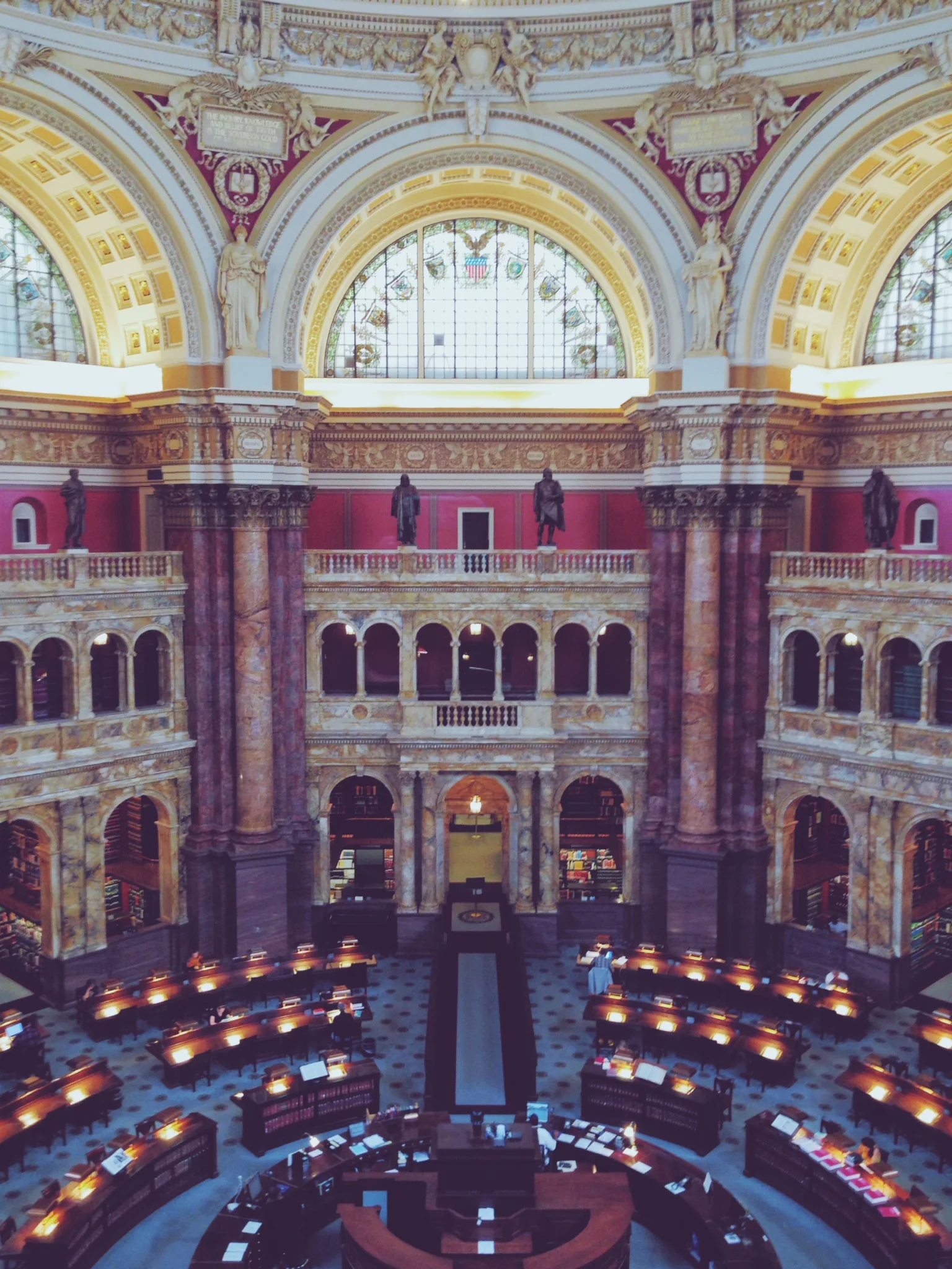 This historic and opulent hotel offers the fully DC experience. The staff was friendly and attentive, especially when we lost our keys and requested extra shampoo. Our room was very clean and authentic, the perfect place to relax after an exhausting day touring. Tip: Book well in advance (I'm talking 8-12 months) for excellent rates, especially if you're planning to be visiting over major holidays like the Fourth of July or the famous Cherry Blossom Festival. Now I forgot to mention that we'd be only staying for three days and two nights. And since we don't get to go to DC that often, we attempted to squeeze in every major landmark into our short stay. First stop on the list was the Library of Congress. This majestic library is perched at the edge of the National Mall, and has the perfect view of the U.S. Capitol and the Washington Monument in the distance. It was like stepping into an old world library with marble columns and floors, famous quotes and renowned philosophers and figures depicted on the walls and ceilings. We walked through a few of the special exhibitions and saw the main library.